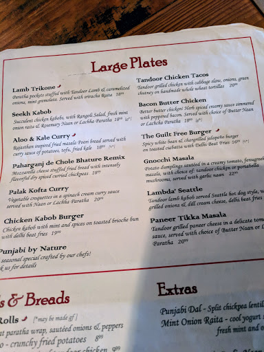 I was a little underwhelmed. Perhaps Im just not "sophisticated" enough for this place? I love Indian food, but this place had a little too much "fusion" and not enough Indian for my tastes. The prices were also very high, even for Redmond... That said, my friends who I went with loved it, and the quality and service were excellent, even if it took me a while to find something attractive on the menu. And man, that Chai Martini? I need to learn to mix that at home... amazing! I wish I liked it better, since I live next door, but if youre into mixing Seattle style with a little Indian spice, this might be more your scene than mine. Just dont expect to find actual Indian food here... youll be disappointed.