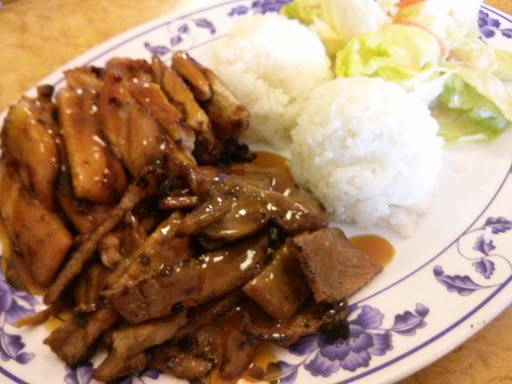 Great place for that quick "teriyaki" fix (or take out). Pretty standard, nothing really outstanding, nothing to complain about. Its just inexpensive, mix of Chinese/Japanese dishes (aka "teriyaki"), and excellent/friendly service. The place is small is probably not suitable for groups - it has the takeout vibe (and look). Free parking in a shard lot (so its small).