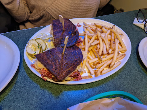 Food is usually good, but my recent experience was not good. Ordered cold pastrami sandwich after being told meat was very lean. I received a roast beef sandwich, sent it back, and it took over 20 minutes to get what I ordered. The amount of fat on it was crazy. Many 1" by 2" areas of fat. Waitress said the fat would have disappeared if I had ordered it hot instead! Umm, no. Will not order that again for sure. Slow to get a drink refill, too.