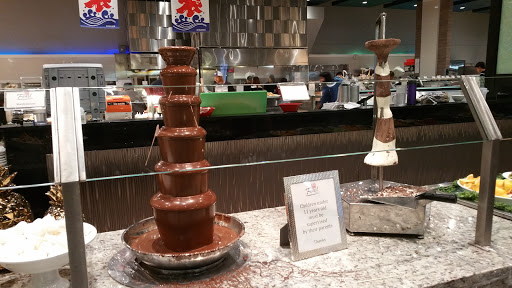 Its so hard to judge a buffet fairly. But when I do, there are two factors that come to mind; price and quality. One doesnt care much about the service as its mainly self service. Cleanliness should be a given as nobody wants to eat at a dirty establishment. Im here for the food. Ive never been to a buffet that blows me away in quality (aside from a select few in Vegas). Feast is no exception, I will give it to them that the selection is pretty decent. A vast selection of seafood - mainly shellfish and a good sushi selection along side with poke and sashimi options. Food goes rather fast so the selection is pretty fresh. Going towards the hot foods, most of the foods I tried were a bit on the bland side. Which could be good or bad - allows you to eat more as you dont get over filled with too many different flavors or loads of MSG. I mainly stuck with oysters on the half shell, crab, shrimp, and poke. Clams and crawfish were kind of boring despite sauce and seasoning, it fell pretty flat in the flavor category. There was a mongolian grill option and a great ramen/noodle section that I didnt sample. As well as an American affair corner that seemed to untouched as everyone was lining up for half lobster tails. They got a pretty good selection of desserts ranging from crepes, to froyo, fresh baked goodies, flan, pudding, ice cream, and even shaved ice and cotton candy. Of course fresh fruit, fondue, shaved chocolate and jello too. All in all a good place to visit if youre hungry - at $27.99/head its not for the faint of wallet but if you eat just right its still cheaper than going out to a traditional sushi/seafood restaurant so there is some bang for your buck, if you can consume at least 3 lbs of food.