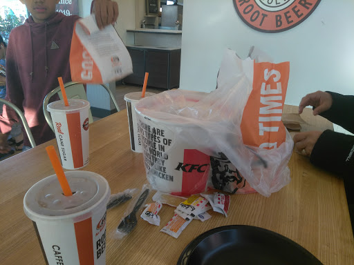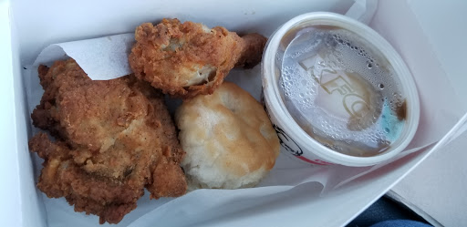 Waited 10 minutes (not an exaggeration) before helped at the counter. One person, Lets call her Nicky (not her actual name), would occasionally pass by and twice said, "Ill be right with you." There were only six people in the dining room and just one other person before me, who had already ordered before I walked in. Nicky finally took my order and apologized for the wait, but offered nothing at all for the inconvenience. I then waited another 5 minutes for the food... which was completely wrong. I ordered all white meat and ended up with the standard 3 piece meal, which has two dark meat items. I brought that back and, again, was offered absolutely nothing. No one cleaned the dining room and all the trash cans were overflowing. A young girl came in later and sat in the dining room without ordering. Nicky came out and sat to socialize with her instead of doing her job and then brought her, without ringing it up, an root beer float! People had come in and were standing in line, all the while. Also, Nicky was dressed all in black, unlike the other employees which leads me to believe she was the shift manager! By the time I left, not one person had attended to the dining room or trash. The food was awful. Ive eaten at KFC since I was a teenager, and this is, by far, the worst food and service I have ever had!