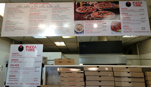 Pizza Time offers affordable pizzas at $5 for a one-topping pizza large enough to feed two people -- or one very hungry person. These $5 pizzas are mediocre -- theyre better than frozen pizza, though! The inside of the place is not much to look at. Theres paper fliers for expensive computer repair services posted everywhere, and cheap chairs for seating while you wait for your pizza. Service is as fast as it gets for a pizza place. About a ten to fifteen minute wait for your order to cook. Id recommend this place if you live in the area and want cheap food. Ive yet to try any of the more expensive pizzas, but I will update my review when I do.