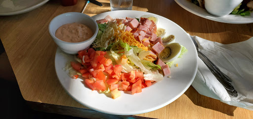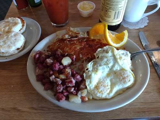 This is one of those places where you can tell straight away that its been there for years. Nothing has been updated since the 80s or so, and theres a certain charm to that; Avon sales literature by the door, ads for other local businesses on the tables, heavy carpet, a menu still advertising a "joggers breakfast" heavy on carbs. Huge portions on the omlette, and inexpensive, but very basic. The desserts are very rich. You wont be able to finish it in one sitting; share with two.