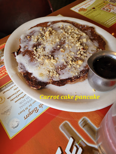 I am giving four stars for the breakfast. We only had dinner here once, and that would only be 3 stars. Never had lunch here. I had the pumpkin spice pancake last time I was here and it was excellent. My husband said that his big thick pumpkin pancake was not cooked all the way through, but he didnt tell anyone and Im sure it would have been fixed immediately if so.