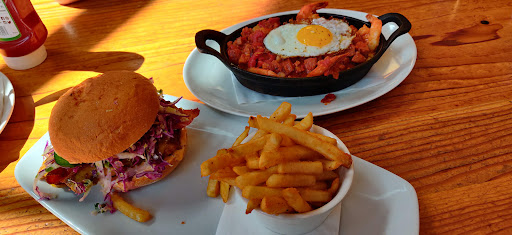 All around 5 stars- So I came here for Sunday Brunch before church. I ended up having the crab cake Benedict and the contrast of the flavors was exquisite! My husband had the fish and chips (which of course I took a bite of) which were so fluffy and crunchy. Cant forget their house potatoes and French fries were perfect cooked and well seasoned. To top it off the service was on point with a great atmosphere. The music wasnt to loud or to quit which was nice. Also their choice of music was very nice and set a really good mood. I will be back!