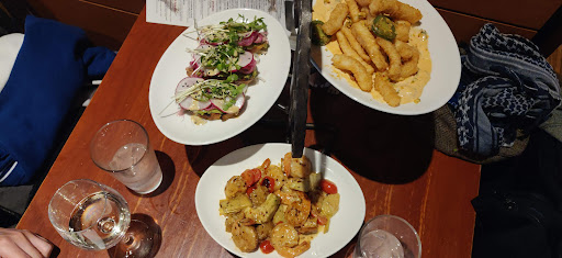 This was our first time here and we liked it! Very friendly service, good atmosphere. Brought friends from the East Coast since we heard this place has a PNW focus. Apparently the fish did not disappoint! I am not a seafood lover so I went with the children breast, which was delightfully seasoned and served with fingerling potatoes. All delicious. Our friend ordered the street tacos, one fish, one chicken and one beef. Unfortunately she was pretty disappointed with the chicken and beef - didnt even finish them. She wished she had ordered all three fish. Our other friends ordered the fish and chips and could not stop raving about how wonderful it was! We thought the prices were reasonable, so overall we were impressed! We will definitely be back.