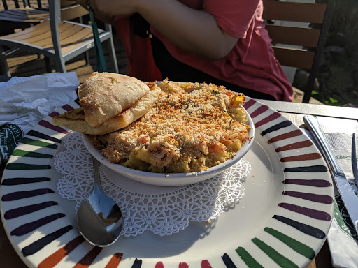 Large menu, full bar, great outdoor seating, occasional live music. Great for a quick bite, would get 5 stars but the food is pretty basic