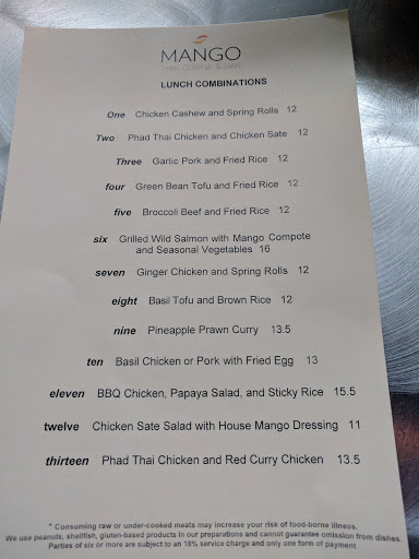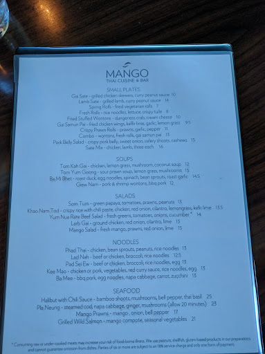 This place is absolutely amazing!! I dont love going out to eat mostly because I feel like many restaurants arent truly clean. Aside from that, weve often gone out and been disappointed with the food in general. However, Mango Thai was above and beyond the standard "nice" restaurant. The staff were very attentive without hovering. The food service was quick, the presentation beautiful, the place was pretty much immaculate, and the food was delicious! In fact, we ended up calling the servers over after our meal to thank them and asked that they pass on the compliments to the chef. We will definitely return for a guaranteed great date night dinner!