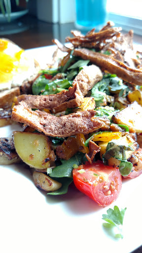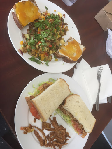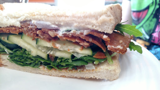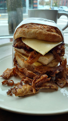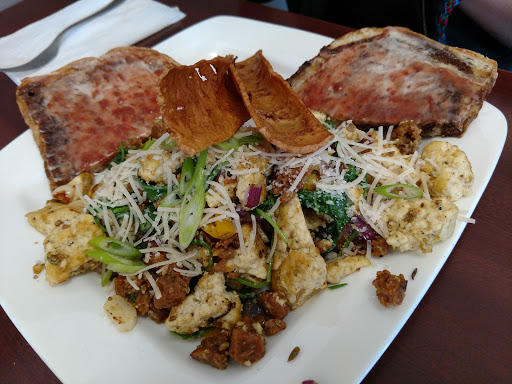 It was a small place, and we visited on a weekday morning so it was slow, but the service was fast and the food was great. Very, very rich but exactly the kind of food Ive been missing as a vegan. They do a lot of stuff with fake meat, and make their own cream cheese in-house. The Sausage Scramble was super heavy and intense but if youre exceptionally hungry it hits the spot.