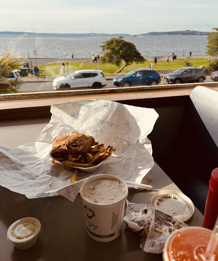 Im not a huge fan of fish in general but theirs is really light and crispy without any nasty green or brown spots in it . My man is crazy about it , he grew up in Kenmore and went to the one there all the time, so he always wants to stop here when we go to Alki. The chowder is good too.
