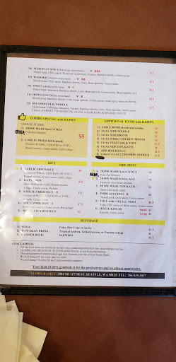 First of all, proper acknowledgment must be paid to the fact that this is a full-on legit, Japanese-style ramen-ya in Seattle. By this, I mean that it has a tight counter and spartan two-tops with a bundle of chopsticks, ramen pepper and la-yu on the table when you sit down. They specialize in ramen and its common izakaya-style accompaniments and little else. They make no pretentions to any pan-Asian/fusion flavor. They use quality noodles and broth, not the notch-above-instant-ramen type ingredients you often find at places where ramen shares the spotlight with teriyaki, sushi, and pad thai. This is a straight-up ramen joint that you might find on an Osaka side street. They do a good job on the ramen-ya fundamentals: miso, shio, shoyu, and curry ramens are all solid, and the gyoza comes stuck together by pan-searing as it should be. They offer a extra noodle and extra pork paid options and they didnt bat an eye at my request for extra garlic. My flavor rating spectrum is: 10=Ramen Jiro in Tokyos Mita district which has a line going down the block at lunchtime. 6=Typical Japanese ramen-ya. 5=Forgettable Japanese train station ramen. 2=Top Ramen. 1=Cup ONoodle. On this scale, Aloha rates a 6.5. IMO it on par with the reputable ramen-yas in Los Angeles, and Im thrilled to have such a place within convenient distance of my home. A couple other reviewers have said that Aloha adds a Hawaiian twist, and I found that only true to the extent that they have items like kalua pork ramen and Hawaiian drink on the menu. Hawaiian influence isnt infused in the staple ramens or side dishes. I found the chicken kara-age to be particularly flavorful and very generous in portion.