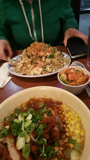 Wed seen lines out the door multiple times after this place opened. Today we thought wed try ramen for the first time and went in thinking wed get take out. WARNING: THERE IS NO TAKE OUT . What there is: a pleasant and competent staff, relatively fast service, and an incredibly tasty meal. My husband tried the garlic chicken fried rice and I tried the Tan Tan Ramen. My ramen was flavorful and spicy - just the right amount of heat. The garlic rice was incredible! It rides that sweet line between garlic and too much garlic, plus it was a generous portion. We paid the 50 cents for a container to take home the leftovers. We were very pleasantly surprised by the whole experience and are already anticipating making this a regular spot.
