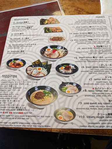 I am in love with Arashi. Every ramen bowl on the menu is amazing. The fried chicken is to die for. That honey glaze!!! Oh man, so good. The service is super quick and the staff is very kind. I am so excited to have this place in my neighborhood.