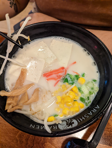Excellent vegetarian ramen shop. The owner is Chinese, so its a slightly different take than the standard Japanese ramen spots in the area. The departures from standards are done in good taste and the results are truly scrumptious. The execution is excellent and even though its vegetarian, it doesnt focus on weird fake meats, or vegan obscurities that non-vegans wince at. This is a restaurant that prepares excellent plant-based meals with fresh ingredients and bold flavors. All Ive had so far is JaaJaa men (twice). Its soupless but there is a thick gravy-like sauce in the bottom of the bowl. The noodles form a bed over the sauce, and a generous serving of different individually-prepared vegetables--not unlike the banchan youd find in a Korean restaurant--is arranged on top in neatly organized portions. If you like eating meals that consist largely of fresh vegetables prepared with the kind of care that vegetarian knows, and youre not into settling for bland flavors this restaurant is here to help you.Arashi Ramen is best.