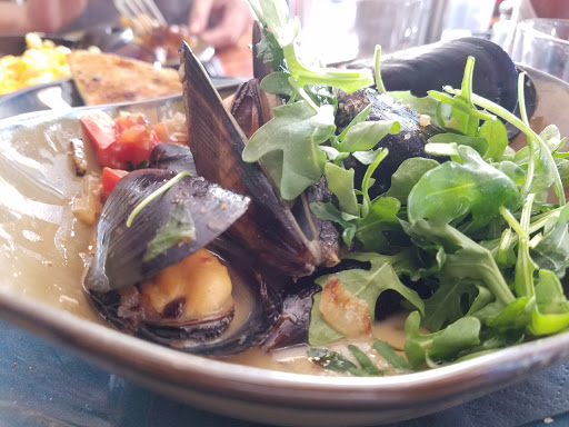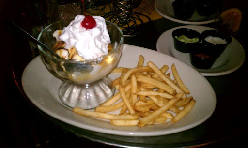 The food was mediocre and incredibly overpriced and the service was slow and unattentive. We gave a mediocre tip for mediocre service, and, after checking my account later, I found that the waitress had given herself a much higher and undeserved tip. Where I come from we call that "stealing". Either pay your servers a fair wage or make sure they deserve a good tip; it disgusts me that she went ahead and stole our money. The only positive thing about the place was that it was an interesting old building, and they had a doggie menu and allowed dogs to come right in and eat. The dogs dont care if their food or service is mediocre-- theyll snarf it up without a question. If only they treated the humans here better than their dog customers with food better than dog food, it might be a place worth going back to.