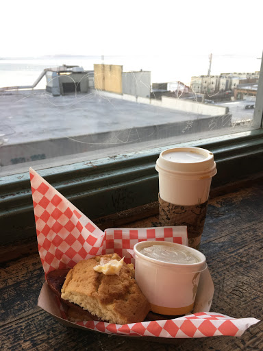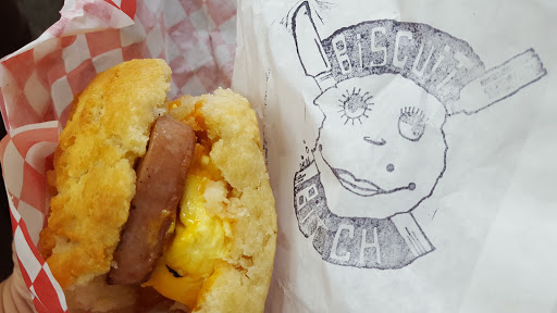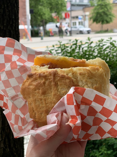 Read about this place online and Ill admit I just wanted to go for the name. Staff was super friendly and saw that I was sweating so offered me a glass of water. Ordered the egg, cheese and sausage sandwich, walked around a bit then drove to a park to eat it. Was still warm and was the best breakfast sandwich Ive ever eaten. Granted, I dont eat breakfast sandwiches more than once a month, but this was the best. The biscuit was super tasty, flaky but not falling apart so that I couldnt eat the sandwich. I took one back to NJ with some peanut butter to eat the next day and that was also really good. The inside is a little small, can seat 10 people maybe and during the busy hours I could see this place being packed easily. My sandwich was just over $5 and I feel was a good price for what you get. If back in Seattle, Ill be back here without a doubt!