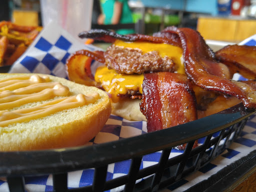 Ive never received my food in less than 30 minutes here, and once it arrives its unremarkable. The fries come up first and sit under the heat lamp so theyre not good by the time the burgers are ready. Also the owners were caught sharing racists text messages with each other so theres another reason to avoid this place. The location is great. They serve beer. But the food isnt worth the wait.