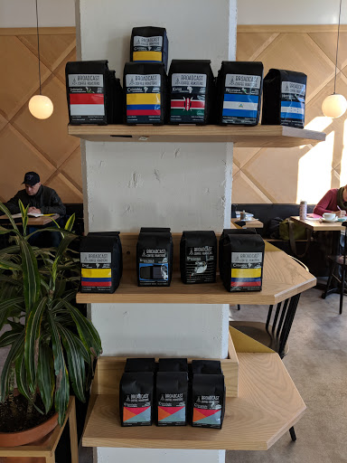 I think that some coffee shops do a bad job of differentiating themselves. Not so with broadcast coffee. Tucked away in what could be considered the downtown of the Roosevelt neighborhood broadcast coffee is a modern coffee shop. Clean lines, hipsters working the counter (that is a positive they are all really cool), music playing that certainly isnt top 40 and oh yeah its right next door to a yoga studio. If you are just running in to grab a cup of coffee while on your way to Greenlake no worries they are dog friendly. If you are looking for a place to open your laptop they have plenty of seating and the place has plenty of natural light. And if you just want to taste some really good coffee or tea they certainly have that. The coffee here is really really smooth, not bitter at all.