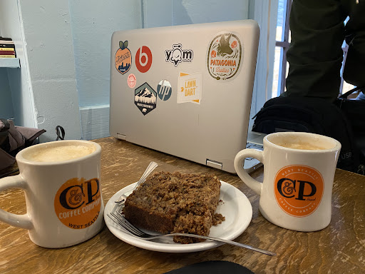 Its too expensive and I feel ripped off. The atmosphere is great and just what you want a coffee shop to look and feel like. Unfortunately, everything on the menu is over priced, the food and drinks are mediocre, and getting served takes forever. Today I paid $3.56 for a small hot apple cider after waiting forever to get helped. Thats nearly $4 for a just under a cup of liquid that probably cost the coffee house about twenty cents. It was poured out of a gallon jug and marginally heated. Didnt taste like much - grocery store special and was only slightly warm. For nearly $4! My mistake though - I came back after an underwhelming experience over the weekend, simply because of the atmosphere. I had paid over $11 for a small, bland pasta salad without enough veggies, and a 12oz latte that tasted burnt. At my usual coffee spot the same order would have cost less than $8. There was live music and there are big tables, but even so, I should have known Id be disappointed by my return trip. Sadly, I wont be going to go back to C&P again.
