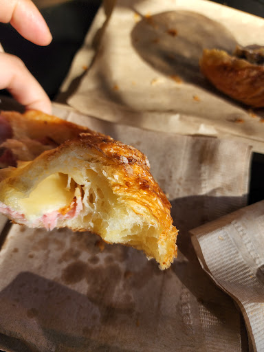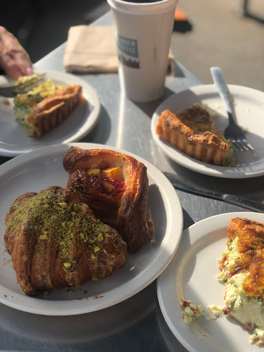 This is the best bakery I have been to in the US. Consistently amazing. The poor or sub 5 ratings are from those who have not experienced authentic French croissants or other baked goods. Read - light and buttery (as in real butter). Not heavy and weighty and meal-like. These croissant will get airborne in a heavy breeze. The quiche is to die for, ready at 10. The ham and cheese pastry is great road food. Sundays are the only day for almond croissant - not comparable to others in the city - I have had them. Sorry to sound like a snob but this place is what it is and earned its long lines.