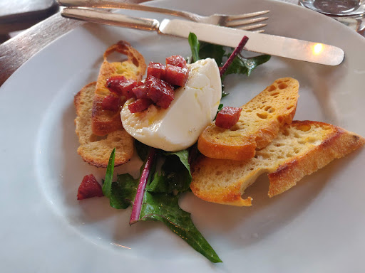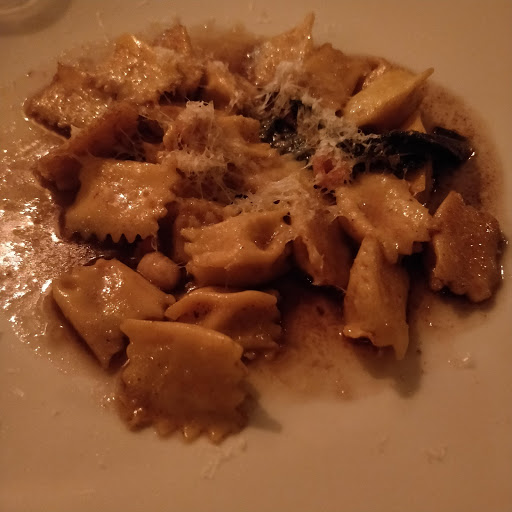 Pros: Good bread + good wine. Panchetta wrapped dates were quite impressive. Cons: Ravioli (with beets) was flavorless. Other pasta dish ordered (not listed online) was only decent. Portions were underwhelming (and not rich enough to be filling). Servers mistake pretension for professionalism. Overall, for the price you can do much better elsewhere.