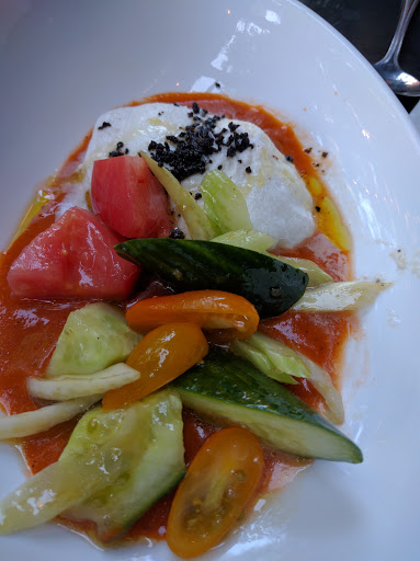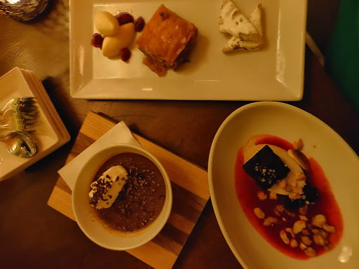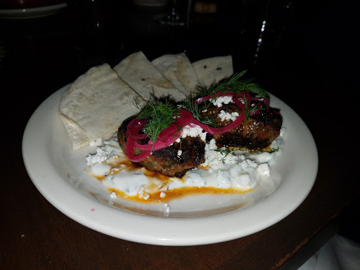 Just found this place and its 2 minutes walk from my place! Atmosphere is classy. Open wood burning stove and an upstairs with some views. Mediterranean food combinations that are delicious. We ordered a bottle of Rosé and didnt like it and the waitress was nice enough to bring us something else. I had the Teres Major steak, Valdeon-potato gratin, boharat huckleberry reduction, charred onion, lobster mushrooms, watercress. Girly had the Spiced lamb kefta, rose petal-cucumber yogurt, shallot, feta, dill, flatbread. Bring some ca$h but its worth it.