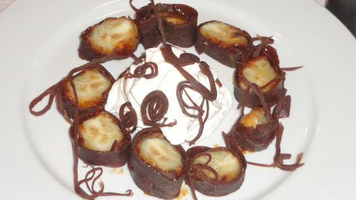 The caramelized banana crepe was the most AMAZING thing Ive ever put in my mouth. It was melted chocolate chips on the inside, then smothered in a buttery chocolate liquid, with fried bananas and caramel that hardened and was all crunchy and sugary topped with almonds and whipped cream. Also the restaurant is adorable, the service is great and the prices are reasonable. Take a date and they will fall in love with you.