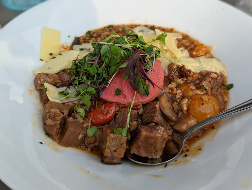 Service: 5+ Food: 5+ View: 4 My girlfriend and I ate here at 4:30. We ordered the crab dip to start and I cannot begin to do it justice. Fantastic. Amazing. If you come here, get the crab dip. 10/10. I had the mushroom Swiss burger and again, the flavor and quality of the food blew me away. It was incredibly delicious. I practically inhaled the burger, it was so good I didnt even touch my beer nor even set the burger down. I have the mushroom Swiss everywhere I go and this one topped them all. My girlfriend had the prime rib sandwich with au jus and that too was phenomenal. We had the pleasure to have Gabby as our waitress and she was very attentive and checked on us regularly. My girlfriend didnt like the first drink she ordered (only because it wasnt quite what shed thought itd be) and Gabby gladly brought her a different one at no charge. Our water was always filled and she made appropriate conversation. The wait time to get our food was as expected and the kitchen did a great job of timing our entrees after the appetizer. In all this has easily become a new favorite of ours. We will definitely be returning in the near future. If you are anywhere in the area, this is a must stop.