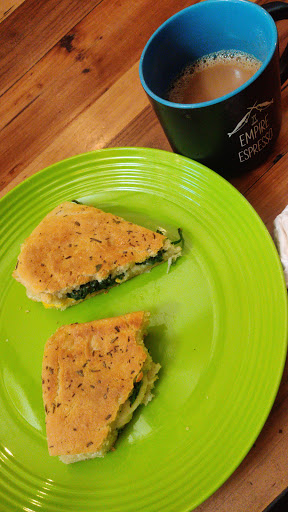 Great place, with outdoor (sunny) seating in back. Great iced Chai and cold brew. Yummy grilled cheese at happy hour, very friendly staff.
