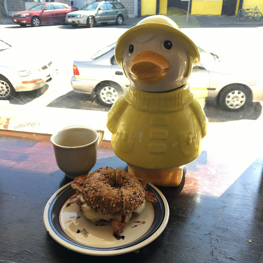 The food is absolutely delicious and the staff were so friendly ! While we were waiting for our food they gave us personal samples of their homemade cream cheeses with are a must have! Try one of their flavored cream cheese on your bagel sandwich or bagel dog. We also got to sample some brownies which were also amazing, made thick and moist. We told the staff we were visiting from the east coast and they chatted with us for quite some time and then gave us free bagels to go for our trip back. Which we tried to pay them for but they refused, they were the nicest, most friendly people Ive met on the west coast. By far best expirence Ive had in Seattle and made our vacation 100% better. We will be coming back here in the future and highly recommend to all! Fat ducks is the best!
