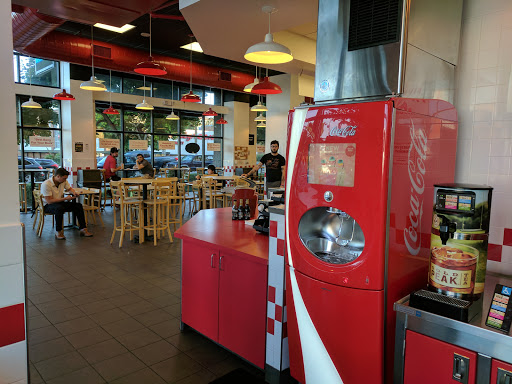 So glad I dont have to support those over-rated old Seattle burger places anymore. The quality of Five Guys is better and service is great. I dont eat burgers but my kids do and when I make homemade burgers its always with grass fed meat. My kids say only five guys make burgers as tasty as mine. We have stopped going there. The fries were cold on the inside and the burgers tasted grisly. They make the milkshakes and fries before your burgers and if it is a "to go" order your eating melted milkshake and lukewarm fries.