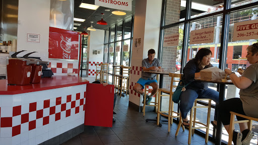 A great 5 guys that upholds the franchise name. Manager is willing to work hard to make you feel at home. Doesnt have a wage slaves feel. Cleaner then almost anything else in seattle. Ill repeat that. This place is clean despite Seattles horrible reputation for food. This place looks like people actually work here and are fired if they dont clean it. I cant stress that enough. It they referred to be exclusively in racial slurs it would still be worth a 4/5