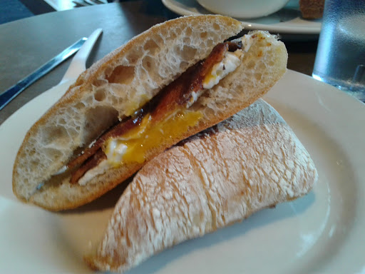DELICIOUS pastries and drinks! Seasonal sandwiches really hit the spot. Try the grilled eggplant if they have it in stock. Rotating menu offers novelty and variety, while classic staples are good for a breakfast on the run. Good atmosphere for writing or getting work done with plenty of tables and plugs for laptops/phones/etc. I would highly recommend this place as a study spot for university students. Open to young and old alike, great meet-up place for coffee with a friend. :)