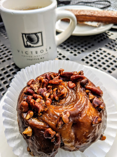 Great coffee and a wide selection of baked goods in a cool, relaxed neighborhood. Great big windows makes it feel like your indoors while sipping.