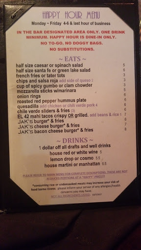 Great food and excellent service. You can get most of the steak entrees that you would get at Jaks.