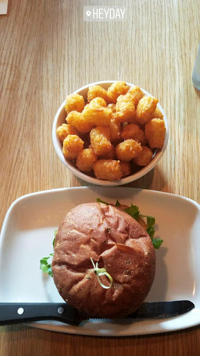 Heyday is a fantastic local eatery. The decor is top notch and the staff are inviting and friendly. I live close by and frequent this place a lot. The burgers are great, I particularly like the Verde, but havent tried something I dont like yet. I also love the bar and the bar manager. She is very knowledgeable and makes stellar beer decisions. The only things that grate on me are the a la carte prices and the focus on families. I completely get the need for neighborhood joint that works for kiddies, but I wish it werent this place, the only real bar in the neighborhood. Very difficult to have an adult conversation at Heyday. There is the bar area but seating is limited. I also feel that the prices are a little steep for the location but its not a deal breaker. For instance if you want fries with your burger it costs you $4+ extra. Dont hesitate to stop by, this place is friendly and excellent!
