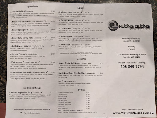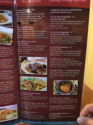Best pho in Seattle and diverse menu offering many different barbecue and noodle soup items. Service and atmosphere are top notch. Have been to Vietnam and prefer the food at Huong Duong!