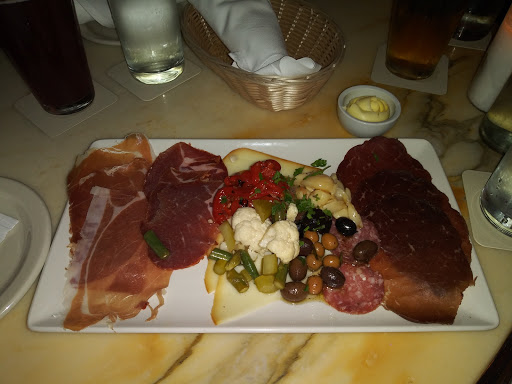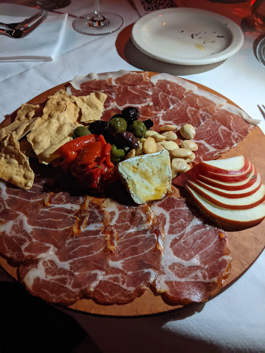 Food: Seafood and noodles - lots of shellfish, pretty good 2 shrimp A good serving of mussels and clams A few small pieces of salmon, barely realized it was there. They were tasty though A few rings of calamari and a couple little leggy pieces too Meat and Cheese Appetizer platter - very good: - 3 pieces Smoked mozzarella - 6ish pieces each of salami, prosciutto? And beef? Last one not too flavorful - Red and green olives, not too strong so good for me - Marinated mushrooms - Roasted peppers and onions - Roasted garlic very soft and a little sweet Lasagna - pretty good Nice ambiance and service.