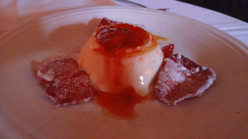 We stopped in around 10:00pm for dessert and a cocktail. The service in the bar area was average. There was not much recommendation from the server about the dessert menu and there were no pictures to aid in our selection. We went with the Torta Gianduia which is a flourless chocolate-hazelnut torte with raspberry sauce and sweet mascarpone. Upon its arrival at our table there were two slices of torte with a small amount of the sauce drizzled over. The cake seemed a bit dried out and the sauce flavor was underwhelming. The ambiance is great and the location is unbeatable, however the torta comes up shorta.