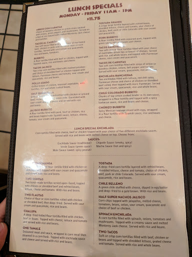 Jaliscos is my favorite Mexican restaurant. Why? Great food, great service, and their bar plays all the local sports events.