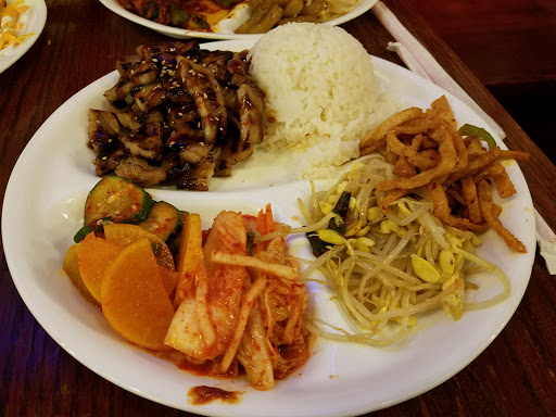 Pretty good Korean food, nice location and fast service. Self serve hot tea and water. Servings are on the small side but still a nice meal.