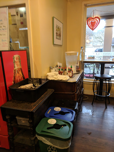 Cute French bakery and cafe, though the pastries are what seem to shine! Great ambiance and decor for enjoying a coffee or small bit, with gilt frames hanging from the wall and a table made from an old door. Plenty of seating later afternoon on the weekend. I resisted the pastries and got the breakfast salad -- a little smaller than I expected for the price on a 9" plate but the mustard dressing was delicious. Id love to come back when Ive earned an indulgence.