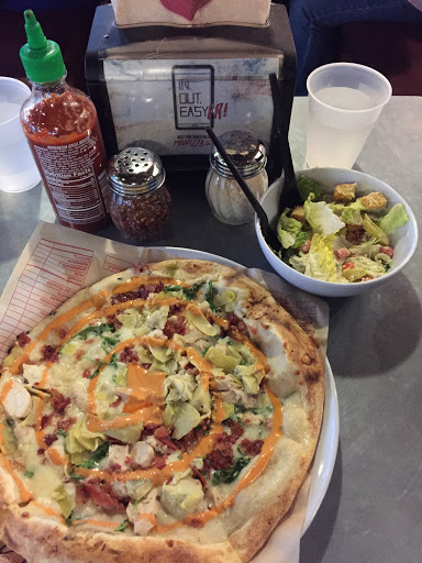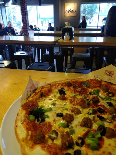 First time here. Its kind of like going to subway, only its pizza or salads. Fast service, build your pizza with whatever you want on it, all one price. Food was good. The croutons on salad were rock hard, so I couldnt it them. The restaurant was clean. Was a bit concerned with the gal cleaning the lobby. Same towel used on everything without rinsing. Cross contamination.