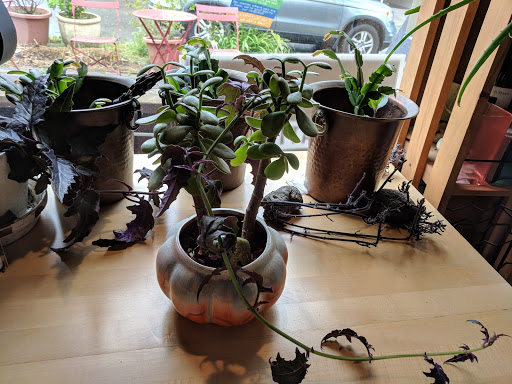 I discovered this funky, small, out of the way coffee shop because my writers support group met here during the month of November 2016 during NaNoWriMo . Small, cozy. Comfortable sofa. There is a small cafe dog in residence!