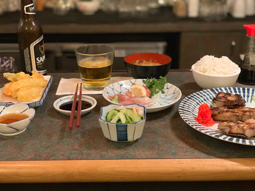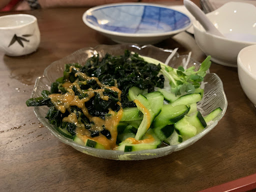 This is a very old Japanese restaurant that serves traditional family style food. I came here with a party of five and we were given one of the tatami rooms. It was cute and while it didn’t give us total privacy, it was a great way to spend a fun evening with friends and students. I ordered the sakana dinner with the salt broiled mackerel, sashimi, and tempura. One of the fillets was good but not outstanding while the other was riddled with bones. I was served albacore, tuna, and yellowtail sashimi. The former wasn’t the freshest, but the latter two were very good. The tempura was some of the best I’ve had because it was crispy, not oily, the shrimp was still tender and sweet, and the vegetables had crunch. There are hits and misses, but the prices are affordable, the atmosphere charming, and worthwhile to come back to.