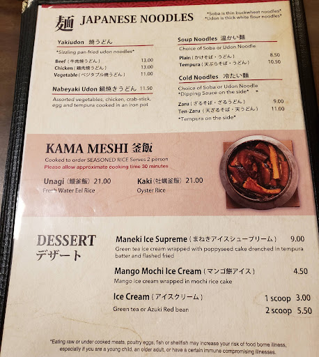 Americanized Japanese taste or stuck in outdated flavor! My wife and I visited there TWICE with a dream that we could dine authentic Japanese foods in Seattle, but it was just a dream. Beef Teriyaki-too salty,( look like Korean Bulgoki), tenpura-too small, Sukiyaki-too sweet(feel like sugar soup), Nabeyaki Udon-too simple, the worst Nabeyaki Udon in my life. Shabu-shabu-Just horrible, better going to Szechuan bistro. Maybe I shoud choose Sushis or Boiled fishes than these menu or just socialize friends with drinking in Tatami room. However, I could say that this restaurant ads are definitely exaggerated over all comparing their history.