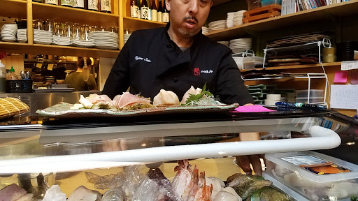 A great place for sushi lovers and even beginners. The fish is fresh, sustainable and traceable. Lots of rolls and also nigiri and sashimi options to choose from, and a dozen types of saki as well. Staff is friendly and well versed in the cuisine. It is a small place but we had no problem getting a reservation for two on a Sunday night. My only issue is that the portion sizes seemed small compared to what I have had elsewhere. This was especially true of the sashimi. However, I realized that the salmon I have been eating elsewhere is farmed, and tastes much different than the wild salmon I had here. (Sadly I like the farmed salmon better, so that probably says a lot about my sushi sophistication, or lack thereof.) The other issue is that the rolls we had were all good but lacked a bit in flavor, but maybe Im just used to spicy mayo covering up bad fish. :-) On the other hand, the garlic edamame was delicious and very flavorful! The presentations were nice. My husband doesnt usually eat sushi but he liked everything he tried, including the sashimi.