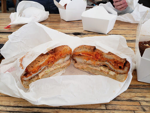 There for a mission chinese pop up. Nice outdoor space. Would like to try more sandwiches based on the bit of one i had.