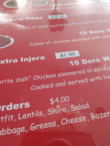 Food here is great! We come here a few times a year, and often in large groups. We have tried almost everything but the Doro Tibs is our fave. Their injera is excellent. The service is fine--this is a restaurant in a house style, and the servers feel like they might be family or friends of the owners. Many speak little English. But it totally doesnt matter and doesnt take away from the great experience. My only complaint, which is a recent development: you can no longer share meals. My husband and I always shared and now cant which is a bummer. We liked that we could fill up on good food for about $20. A plate of food is around $15 without tax/tip.