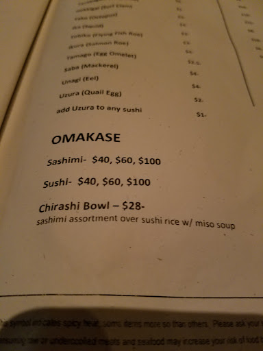 Absolutely delicious sushi. These chefs are consummate professionals, and each has a different specialty - if you have time, it is well worth it to sit by the sushi bar/kitchen and watch them work! Their happy hour menu is highly recommended. The sushi rolls are breaded, so are not technically genuine sushi if you are a purist, but they are divine. Drinks arent weak, and they have an excellent saké and Japanese wine menu, with pairing suggestions for the novice.